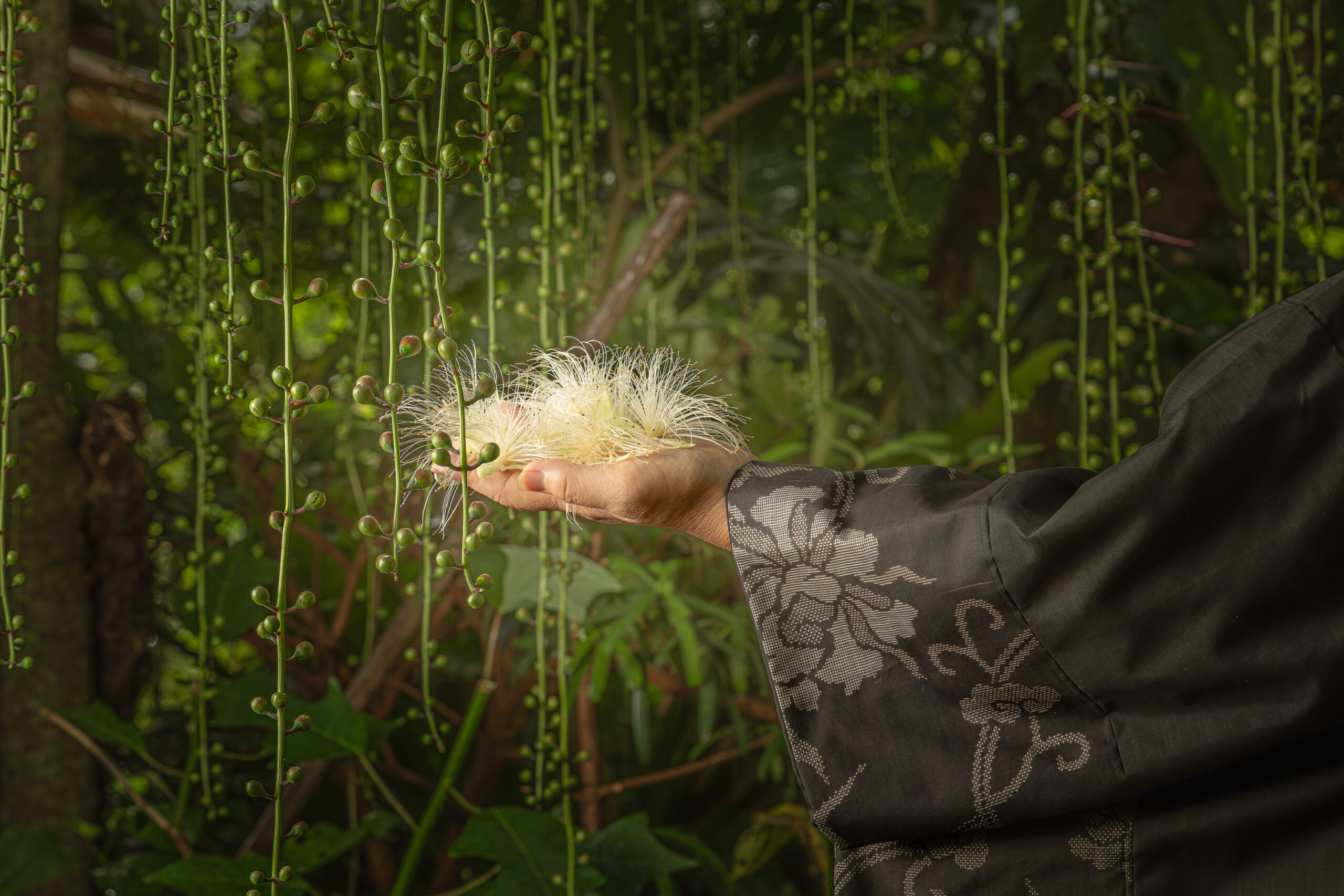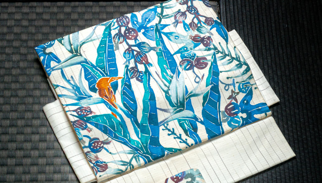 クリエイター・漆原かおりが一点ずつ手作業で仕上げる帯・洋服・小物は、島の自然や記憶を纏うような優しい存在。