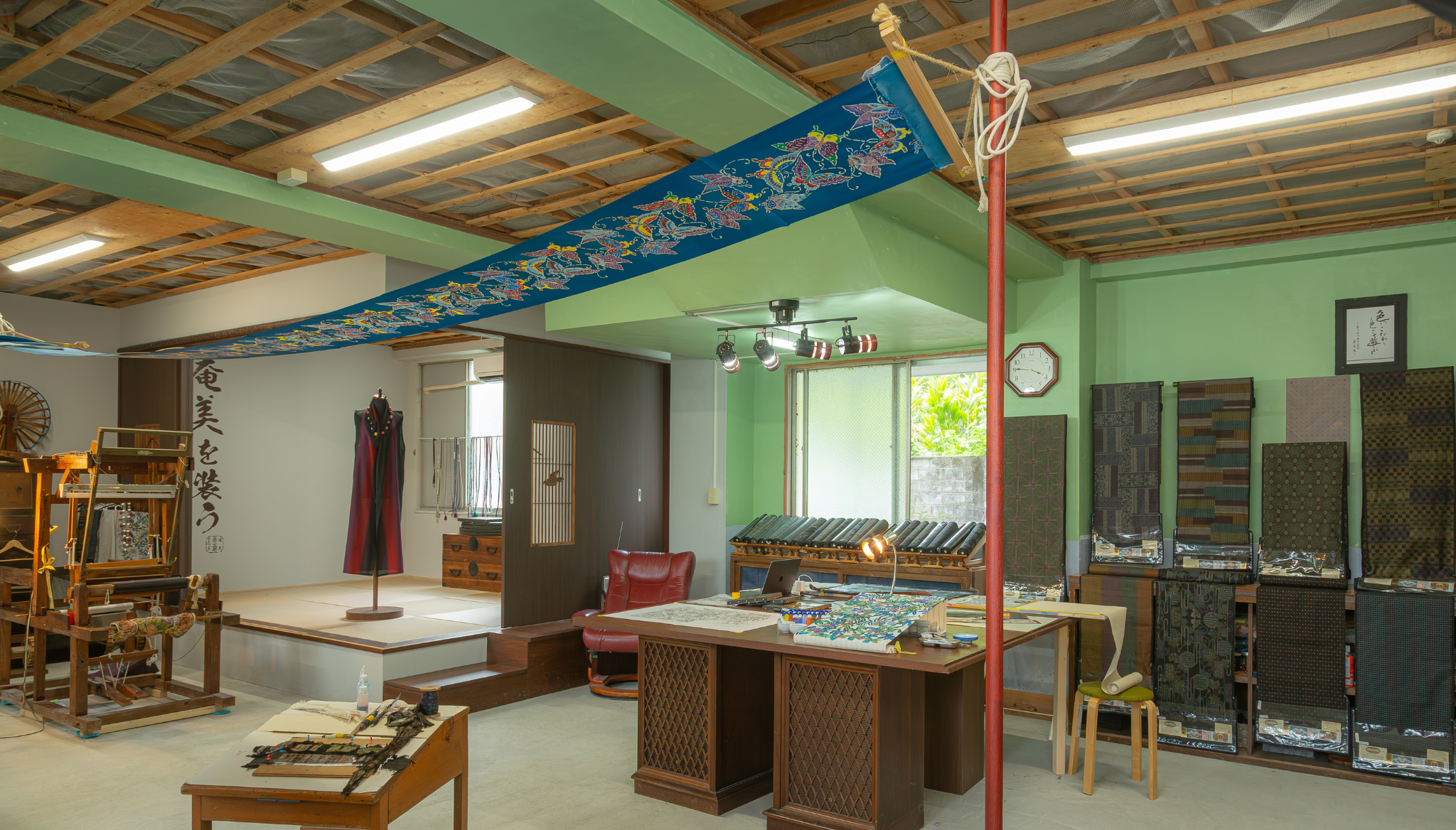 『奄美を装う』をテーマに、大島紬のコーディネートを通じた新しい提案や体験を通して、奄美を肌で感じられる空間です。