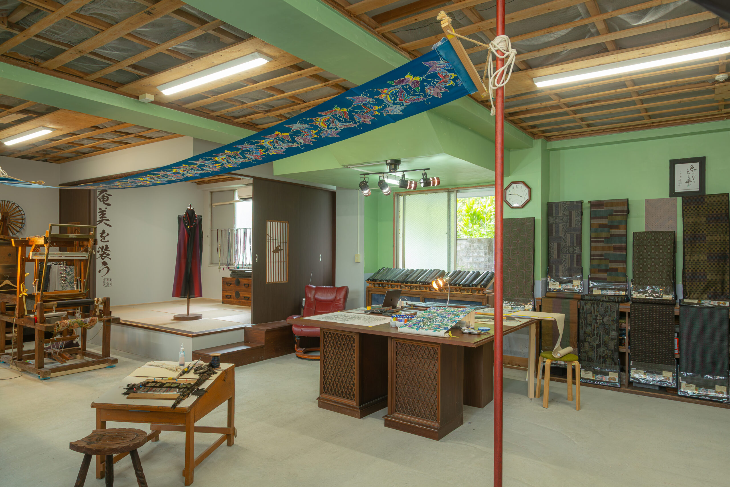 歴史ある大島紬工場を落ち着きのある創作工房へと改装。